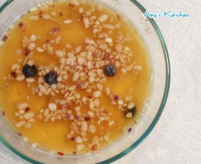 食材 : 料理菇事-桂圓木耳粥, 膠原蛋白凍(可用愛玉取代), 鮮奶, 藍莓