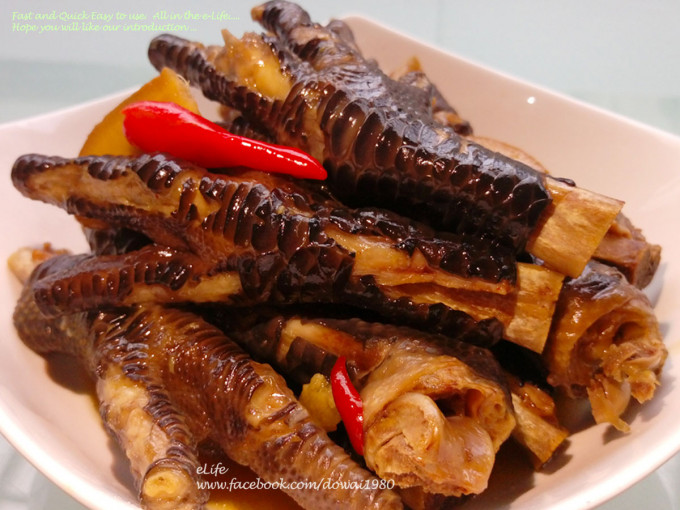 食材 : 雞腳, 薑片, 蒜頭, 辣椒, 米酒, 醬油, 蠔油, 冰糖, 肉骨茶包, Dowai全營養萃取鍋
