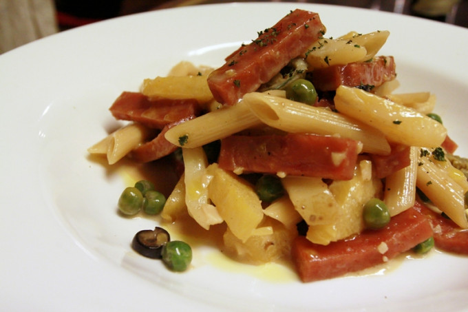 食材 : 火腿, 筆管麵, 青豆, 鳳梨, 黑橄欖, 橄欖油, 鹽、胡椒