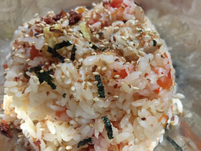 食材 : 白米, 牛蕃茄, 杏鲍菇, 玉米筍, 奶油, 水, 鹽, 黑胡椒, 廣島香鬆