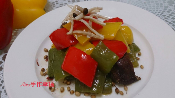 食材 : 【食材】紅甜椒, 【食材】黃甜椒, 【食材】青椒, 【食材】香菇, 【調味料】橄欖油, 【調味料】玫瑰鹽, 【調味料】黑胡椒