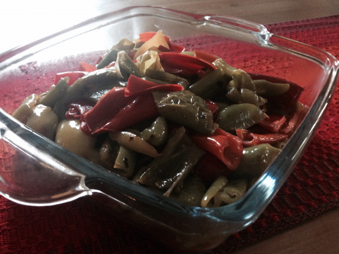食材 : 青椒, 紅椒或彩椒, 沙拉油, 鹽, 水果醋, 糖, 醬油