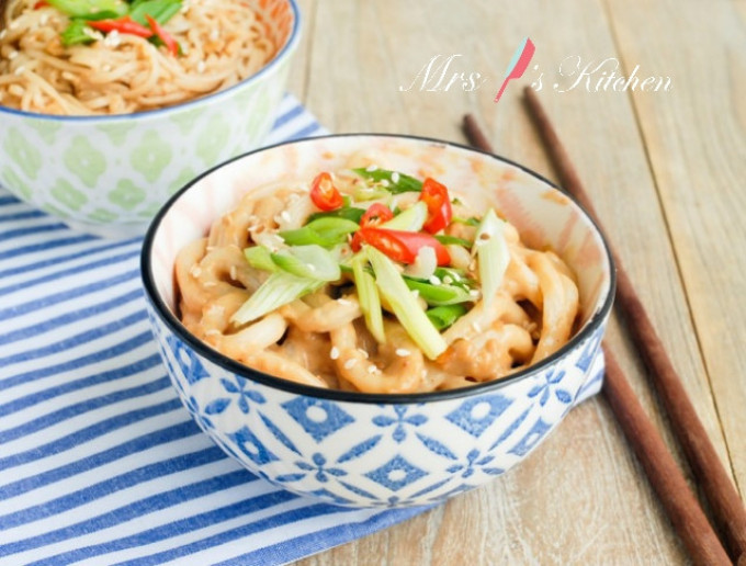 食材 : 麵條, 花生醬, 醋, 麻油, 辣椒油, 糖, 水, 薑末, 蒜末, 蔥末, 辣椒