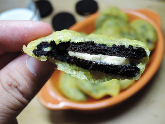 有次逛夜市時,孩子看到有攤販賣炸OREO,非常的興奮,我也樂於嘗鮮,但一小包就要50塊,三個人分著吃,真不過癮,所以我就到超市買了我愛的花生巧克力口味,然後沾上酥炸粉炸,就可以炸出好多OREO,你問我口感如何,我只能告訴你,沒有單吃OREO的甜,而且很好吃喔!!