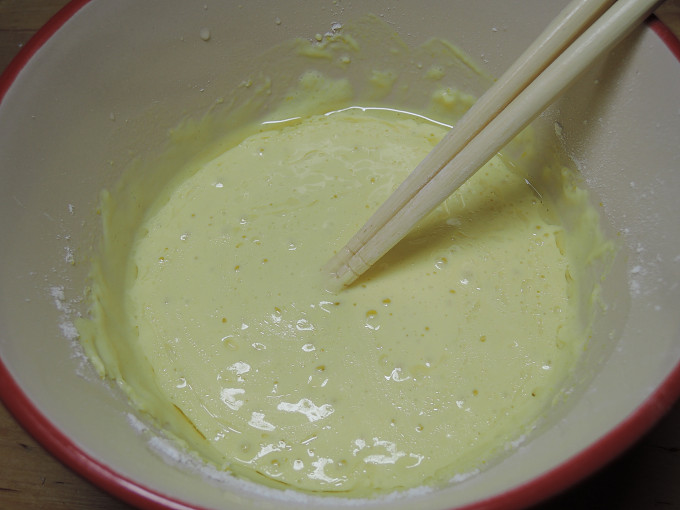 油熱道約160度時,就可以把OREO放入麵糊中,如何測試160度呢,就是把筷子直放入油中,筷子四週會出現小泡泡,或者是滴麵糊進油中,麵糊快速浮起來就可以囉!!