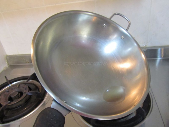 熱鍋,加入一大匙油,讓油的面積散布大一些,之後轉中小火