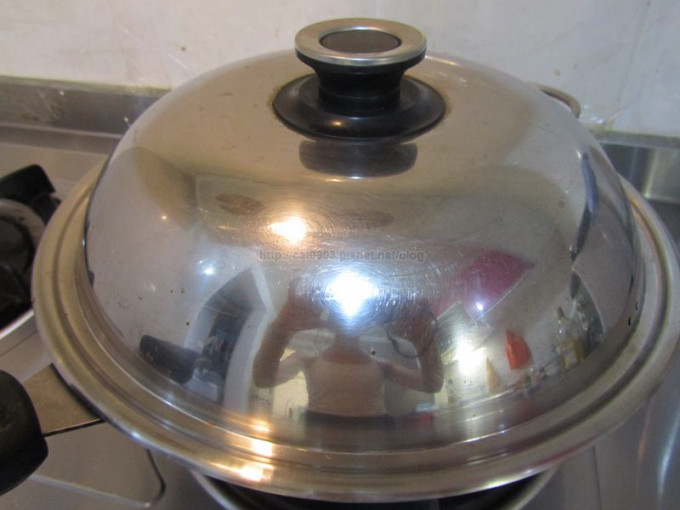 5分鐘後打開鍋蓋檢查,如果水都煎乾了,再加半碗,蓋上鍋蓋 (如果要煎餅花,可改放1:10的麵粉水,但要更注意煎乾的時間)