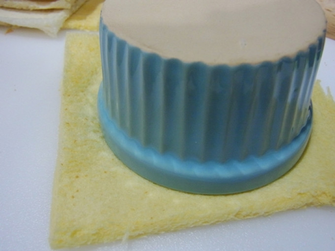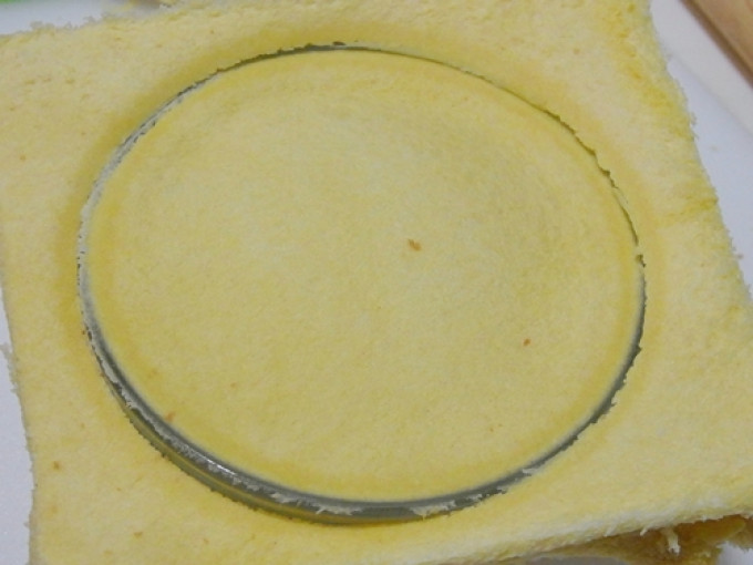 挖一球冰淇淋放在記號中間、壓扁一點。