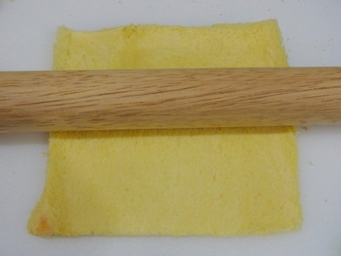 油溫190度高溫快速油炸(如果要裡面冰淇淋不融解,油要蓋過吐司就能全面快速受熱;一面炸好翻面炸,時間停留較久就會溶解一些些)至金黃色撈起。完全不會油~~