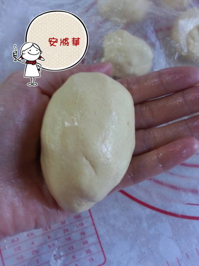 收攏包合收口朝下,雙手搓揉成圓橄欖型