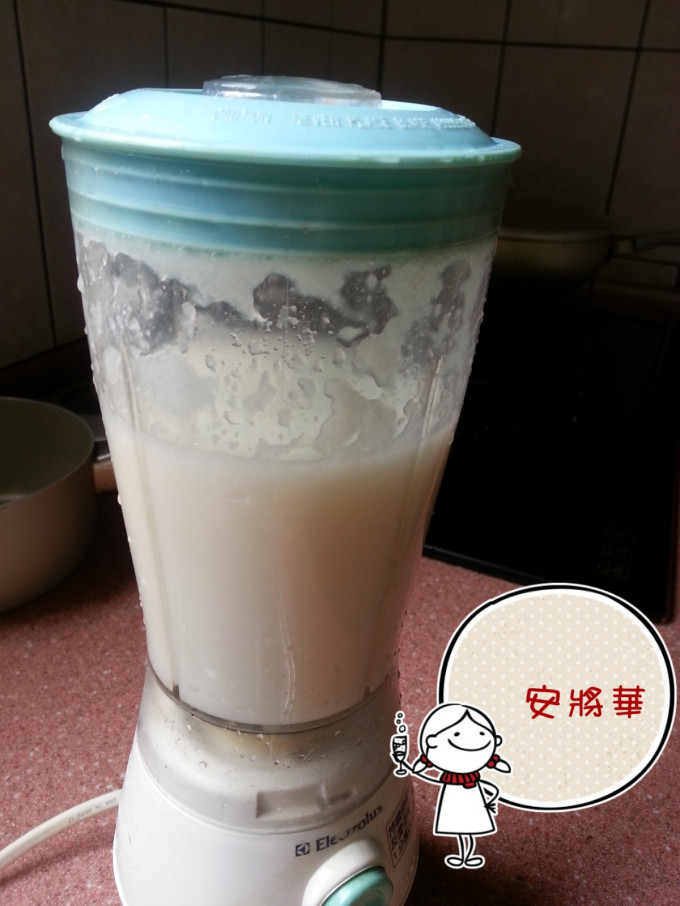 將打好的米漿,倒入鍋子小火加熱,邊攪動防止燒焦,用手摸微燙即可