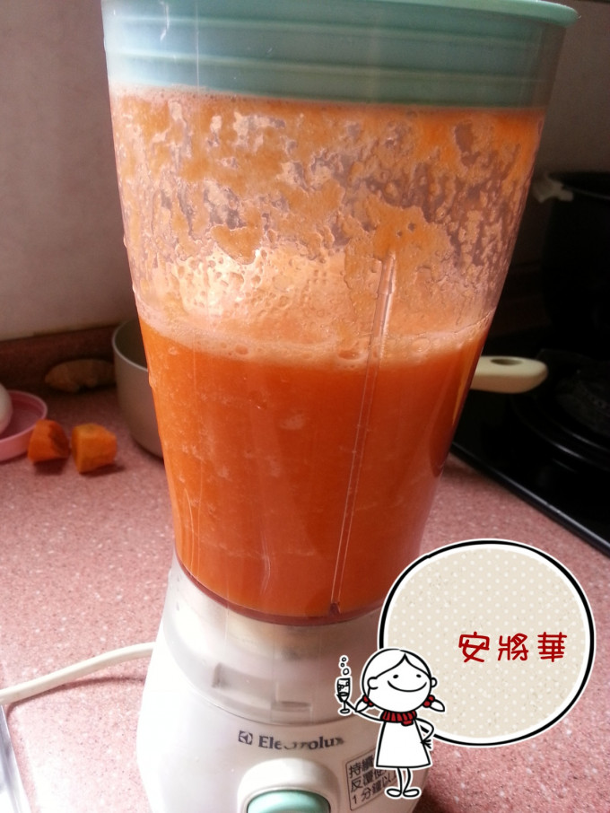 將紅蘿蔔削皮刨絲加適量的水,打得動即可,打成泥秤好140g