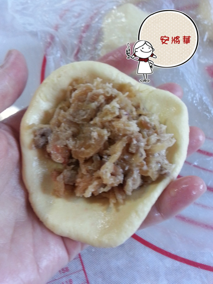 蒸好打開取出放涼即有軟Q的金黃菜包喔!