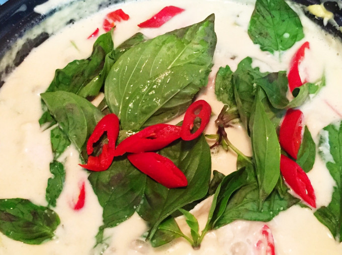 ps:綠咖哩的作法有兩種,有先炒咖哩醬的,也有先熬煮椰漿的,兩種都試了。如先炒咖哩醬,椰漿要從鍋邊分次加;先熬煮椰漿的,建議用深鍋,椰漿簡直就像火山熔岩會噴發啊~要特別注意!!!