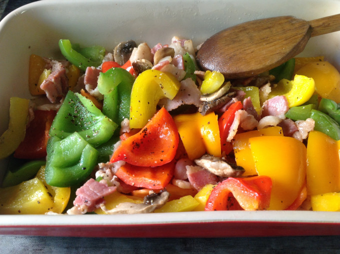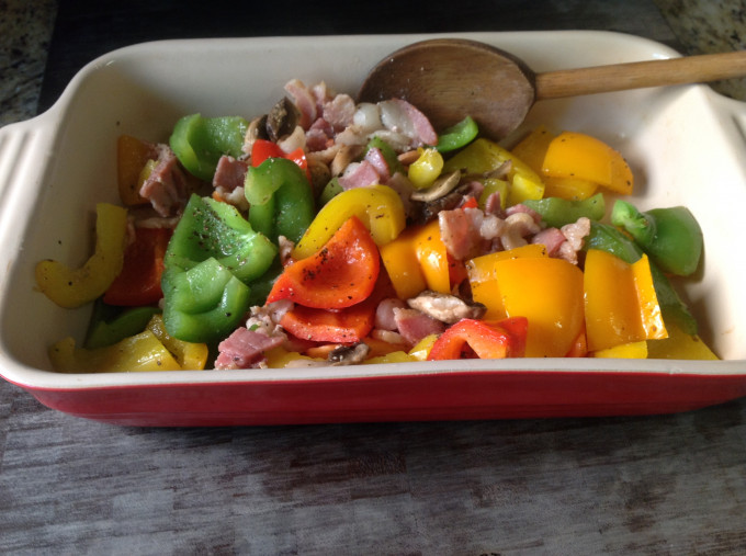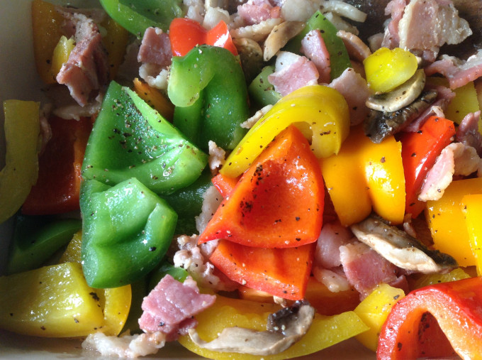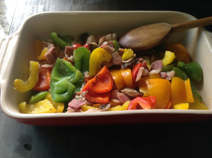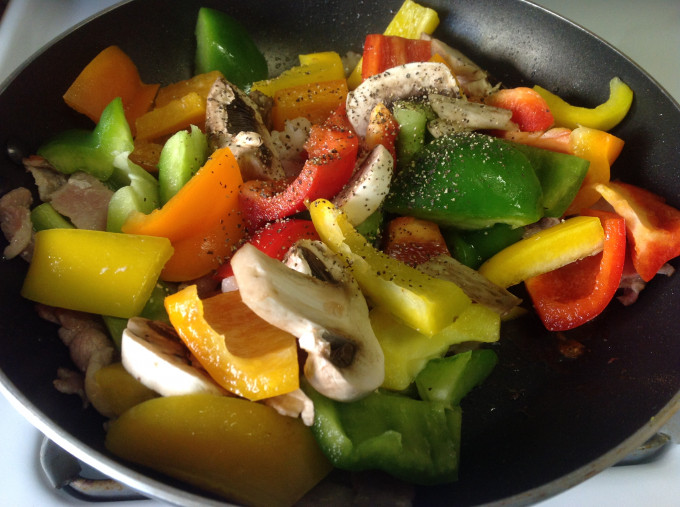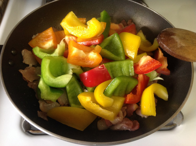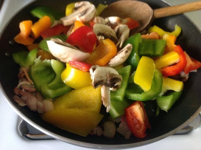 繽紛4色青椒炒蘑菇培根❤!!!