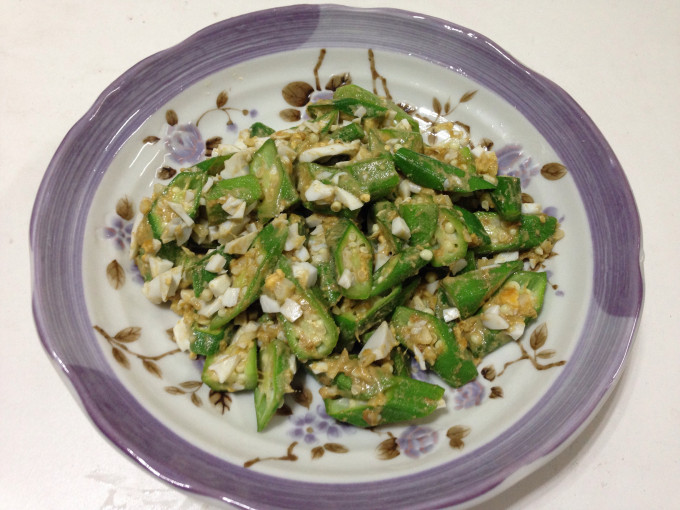 冰箱還有一盒秋葵,吃膩了清燙方式,加入鹹蛋也是不錯的選擇!