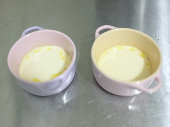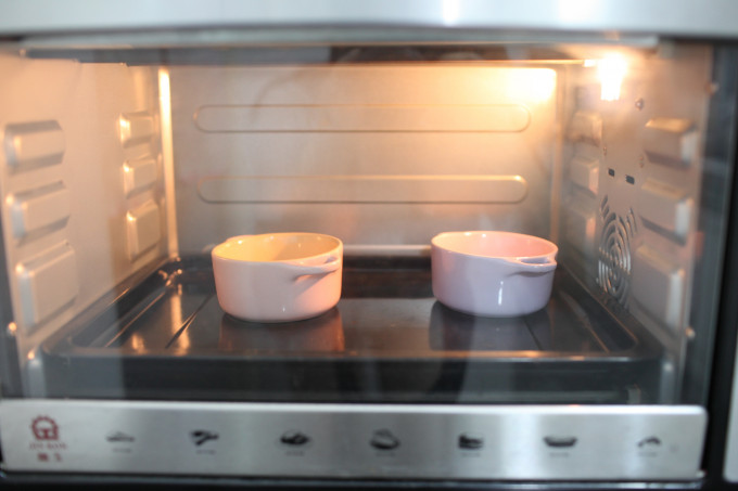 預熱好的烤盅抺點油再倒入拌好麵糊。