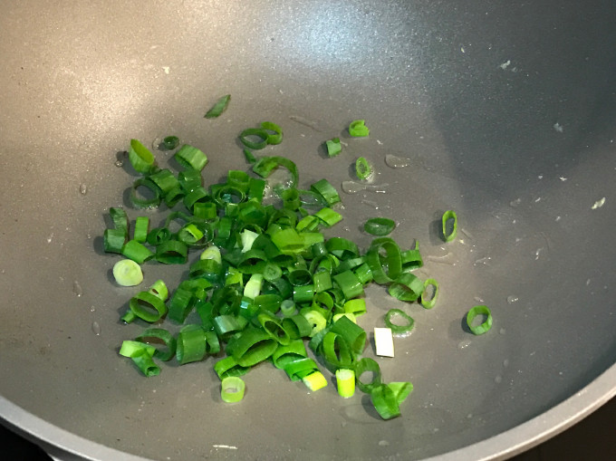 原鍋再倒入1小匙多油,煸香蔥花,這步驟很重要,一定要煸到蔥香四溢甚至有點微焦,待會的湯才會香。