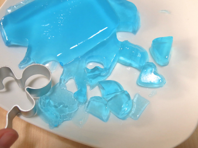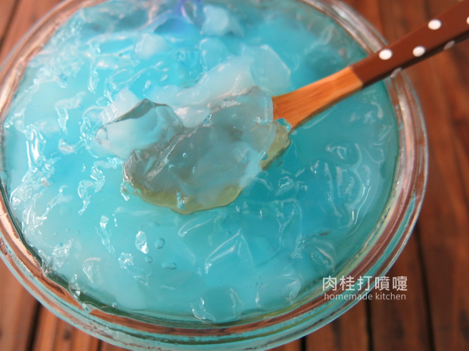 將剩下的藍色果凍鋪在最上層,這樣就完成,
