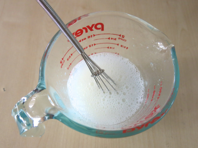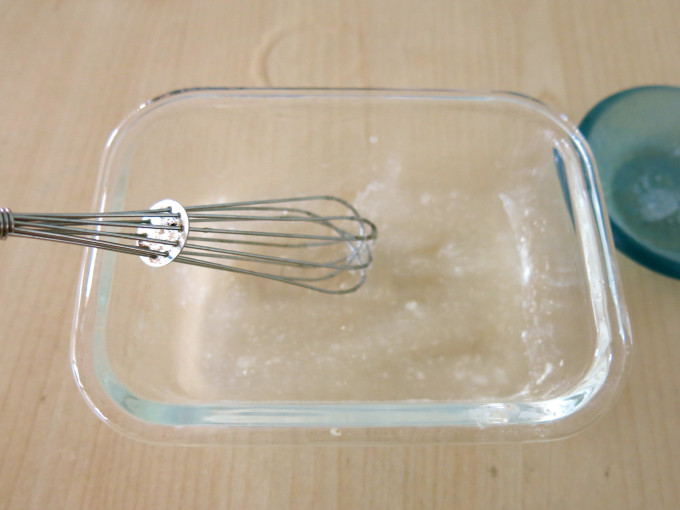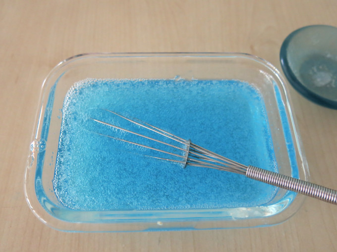 溫開水50g加入果凍粉5g攪拌到無粉粒。