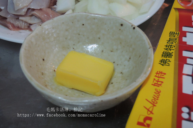 無鹽奶油放入鍋中使其融化