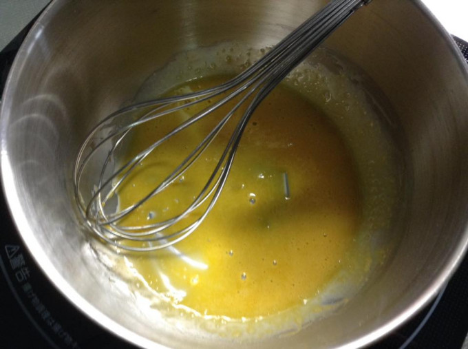 小鍋中,放入蛋黃。