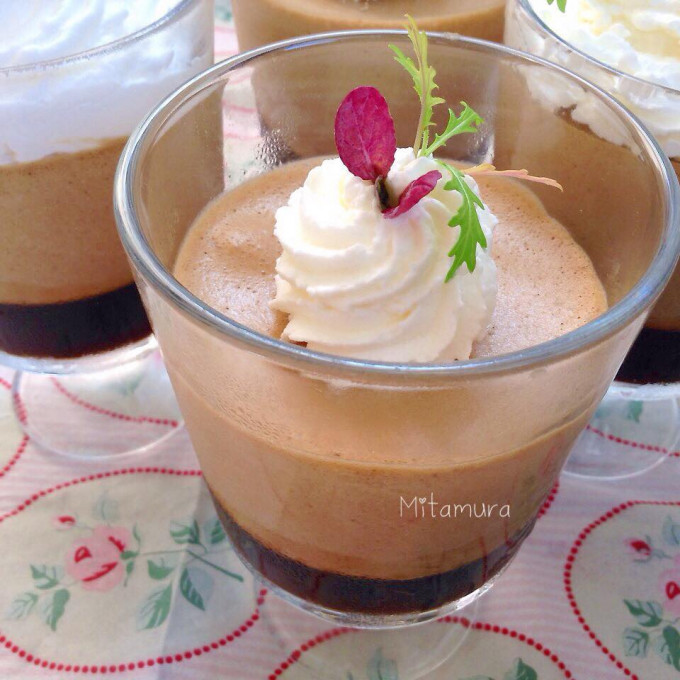 分量倒入杯子中,然後放入冰箱冰鎮約30到40分鐘。