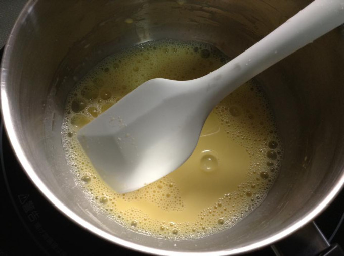 然後開小火,一邊加熱一邊攪拌至成濃稠狀。