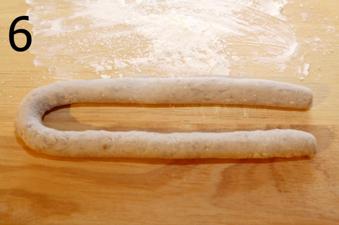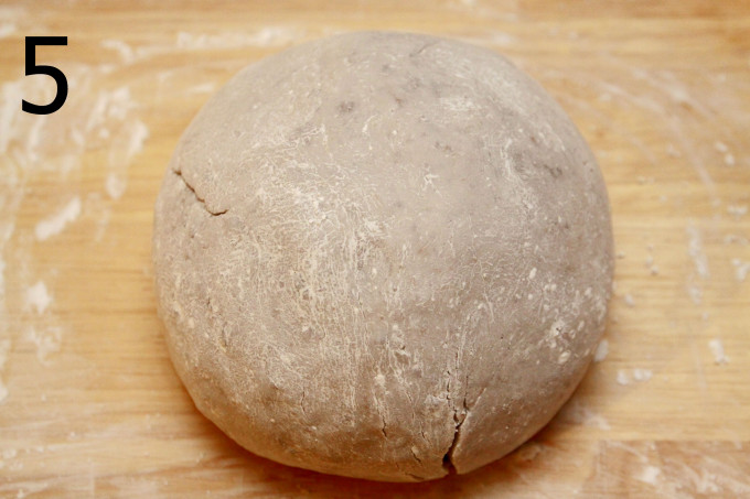 揉成一不黏手的粉糰後,移到砧板上,沾點太白粉防黏;