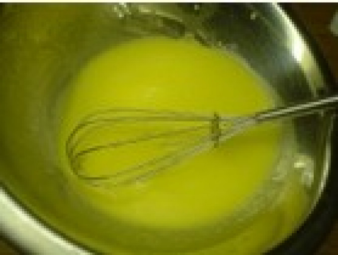 把蛋黄,醋,檸檬汁混和在一起再把鹽,胡椒,肉桂加上拌勻