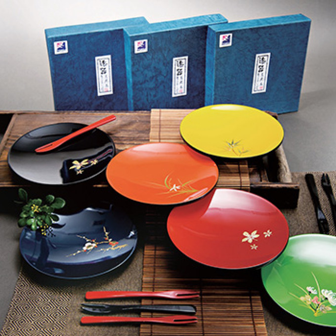 【樺泰實業有限公司-五吋點心皿,市價600元】以手工上漆的方式彩繪出深具客家意象的作品,經過木胚、磨平、底漆等12 道研磨程序的漆器,精巧細緻質感佳,將早期珍貴漆器工藝,自然融入現代生活中。