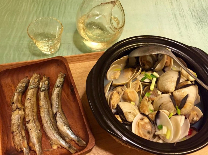 在爆香的鍋中放入吐沙、洗淨後的蛤蠣及清酒,蓋上鍋蓋待蛤蠣開殼後,再試味道,斟酌是否要加水調整就完成了~