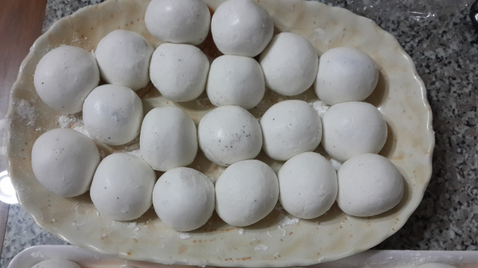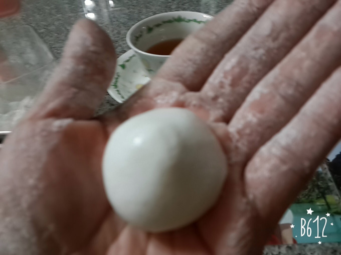 用虎口慢慢捏緊搓圓,盤子上灑上少許糯米粉或是玉米粉(防沾黏)即可