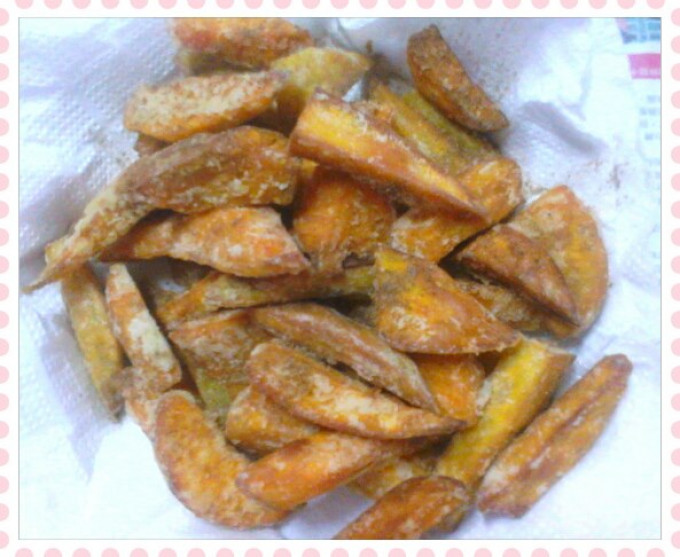 食材 : 地瓜, 地瓜粉, 油, 胡椒粉或梅子粉