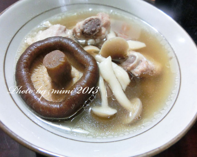 食材 : 排骨, 乾香菇, 蒜頭, 水, 雞粉, 鹽巴, 米酒