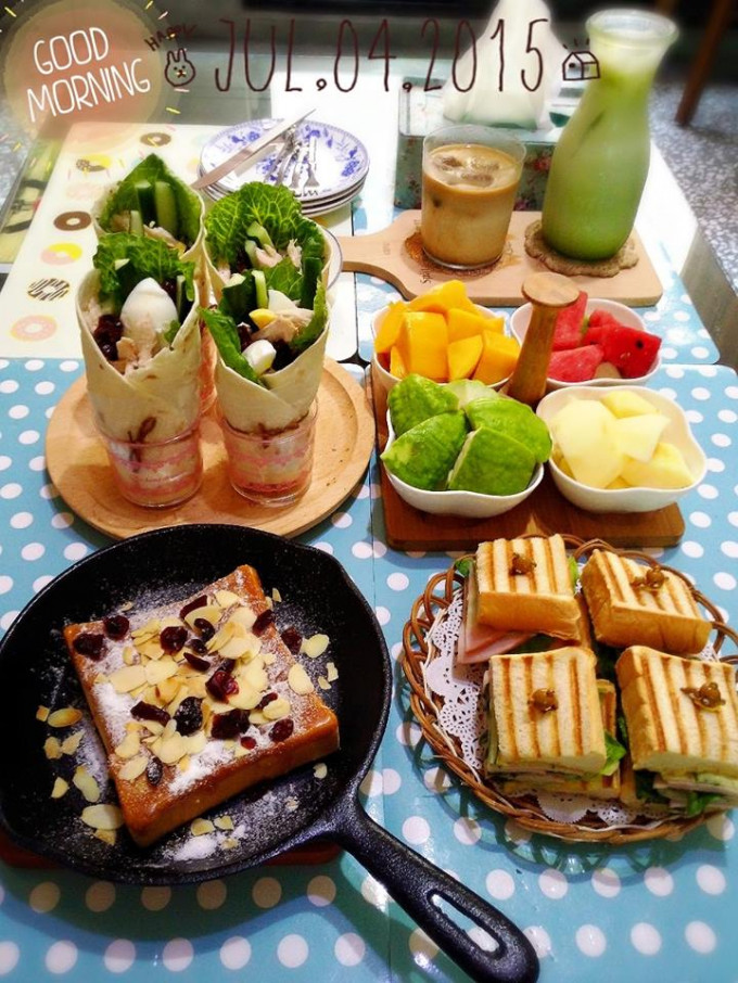 食材 : 厚片士司, 捲餅, 生菜, 雞胸肉, 水煮蛋, 杏仁片, 糖粉, 蜂蜜判芥未醬