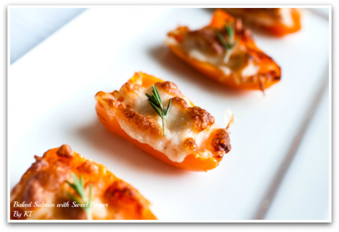 食材 : 小甜椒, 鮭魚, 黑胡椒, 海鹽, 馬芝瑞拉起司, 白酒(米酒, 清酒亦可)