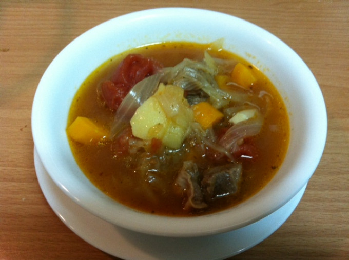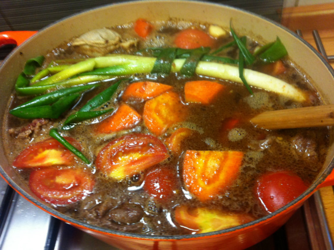 食材 : 牛肋條, 洋蔥, 紅蘿蔔, 馬鈴薯, 牛蕃茄, 鹽, 黑胡椒, 月桂葉, 蕃茄醬