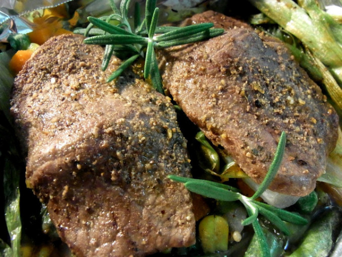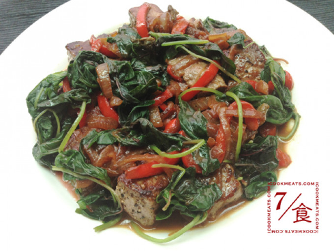 食材 : 沙朗牛排, 紅莧菜, 中型洋蔥, 紅椒, 萊拇的汁, 鹽, 第戎芥末, 牛油, 酸豆(Capers), 水, 醬油