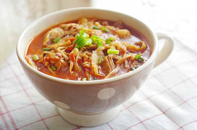 食材 : 肥牛片, 金針菇, 豆瓣醬①, 蔥花, 蒜蓉, 鹽