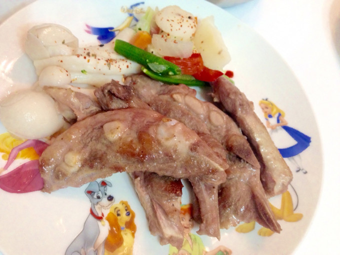 食材 : 大蒜, 黑/白胡椒, 玫瑰鹽, 紅酒, 檸檬汁(需稀釋), 紐西蘭羊小排, 紅椒, 四季豆, 大金針菇