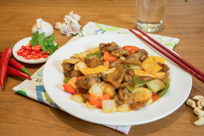 食材 : 冷藏澳洲小羊燒肉片, 太白粉, 水, 洋蔥, 紅彩椒, 青椒, 老薑, 蕃薯粉, 醬油, 碎大蒜, 五香粉, 米酒, 太白粉, 糖, 醋, 番茄醬
