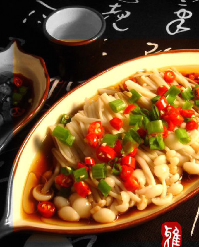 食材 : 金针菇, 小红椒, 葱, 油, 盐, 淡酱油