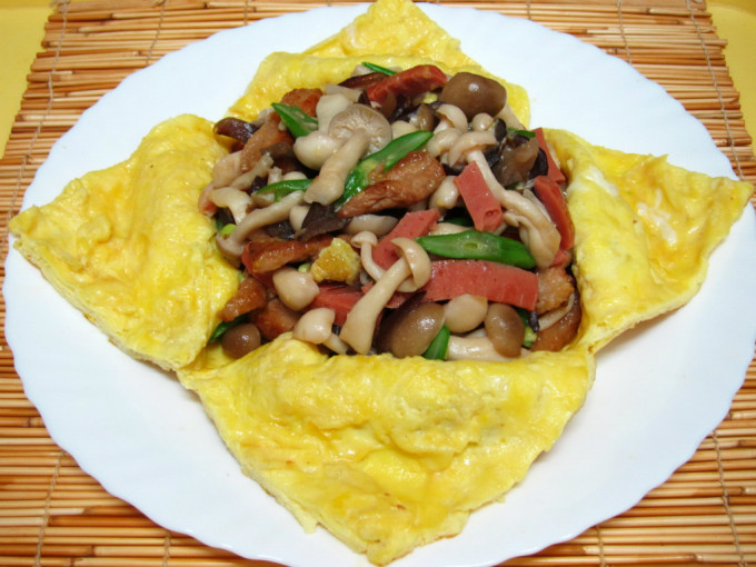 食材 : 木耳, 四季豆, 熱狗, 雞蛋, 豬肉, 好菇道雪白菇, 好菇道鴻喜菇