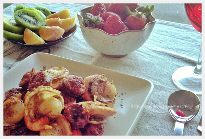 食材 : 西班牙Chorizo香腸, 新鮮扇貝, 檸檬汁, Basil