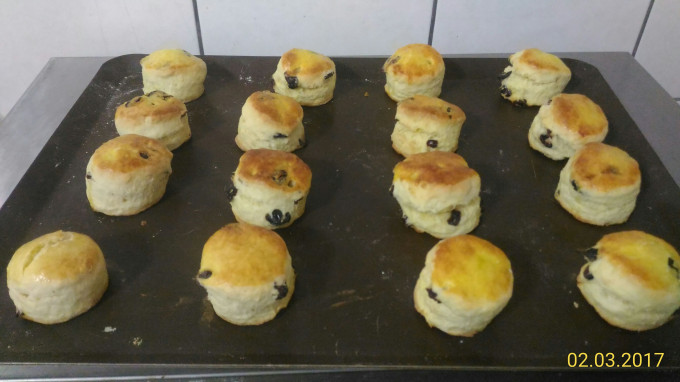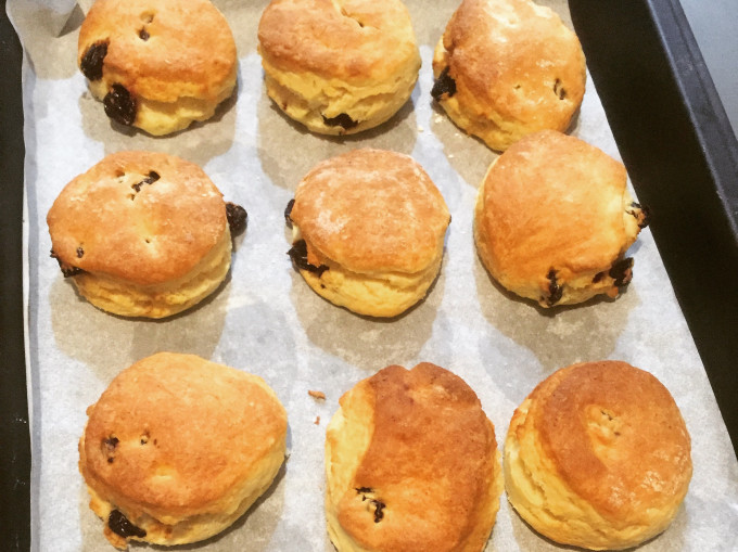 食材 : 低筋麵粉, 奶油, 砂糖, 鹽, 牛奶, 雞蛋, 泡打粉, 櫻桃乾