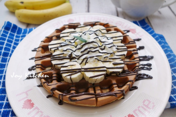 食材 : 中筋麵粉, 糖, 泡打粉, 小蘇打粉, 牛奶, 蜂蜜, 融化奶油, 蛋, 香蕉, 融化黑巧克力