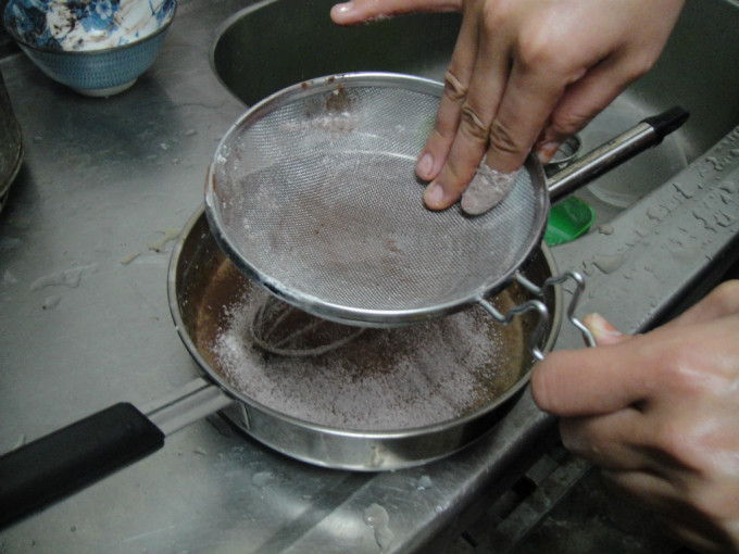 低粉.可可粉過篩分次加入