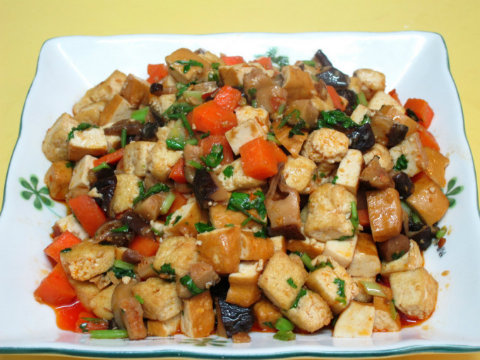 另起油鍋,紅蘿蔔、香菇炒香,放作法1臭豆腐拌炒,加辣豆瓣及酌量的鹽拌勻入味。