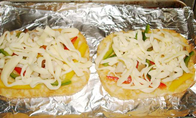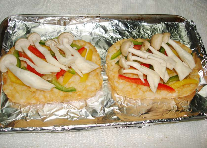 把薯餅加上紅、黃、青椒和鴻喜菇...